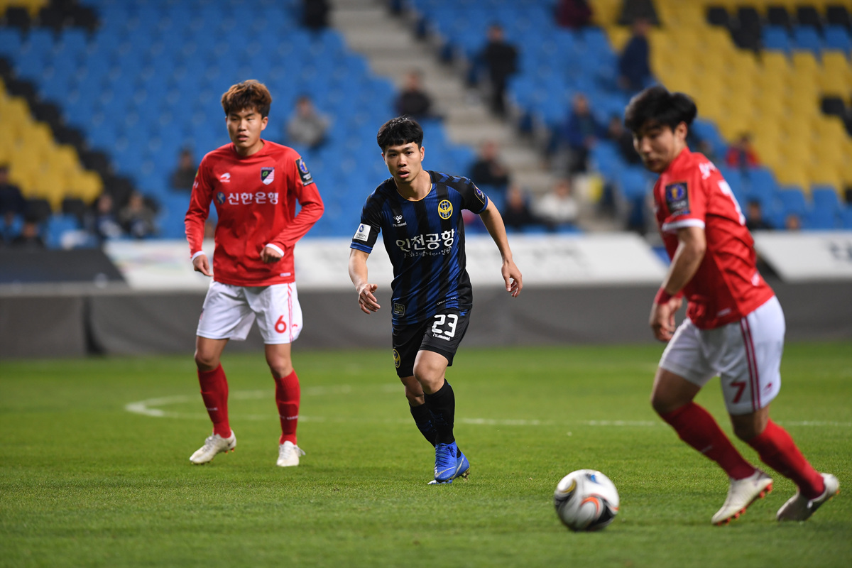 최원철이 찔러준 스루패스를 이동현이 침착하게 득점으로 연결하며 청주가 1-0으로 앞서갔다. 엎친 데 덮친 격으로 인천은 전반 25분 남준재가 다쳐 김진야가 조기 투입됐다. 이후 인천은 연이어 반격을 펼쳤다. 그러나 소득은 없었다. 그렇게 인천이 0-1로 뒤진 채 전반을 마쳤다.