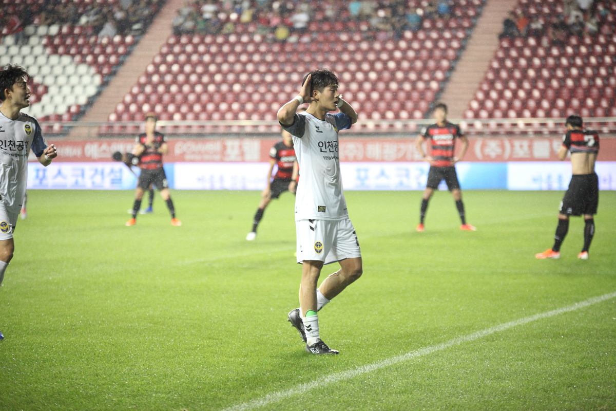 경기 종료 직전 승리를 위한 인천의 간절함이 빛을 봤다. 후반 47분, 곽해성의 코너킥을 받아 이제호가 극적인 헤딩골로 연결했다. 마지막까지 포항이 골포스트를 맞추는 거센 공세를 펼쳤지만, 인천이 끝까지 막아내는 데 성공하면서 경기는 인천의 2-1 극적인 승리로 끝났다.