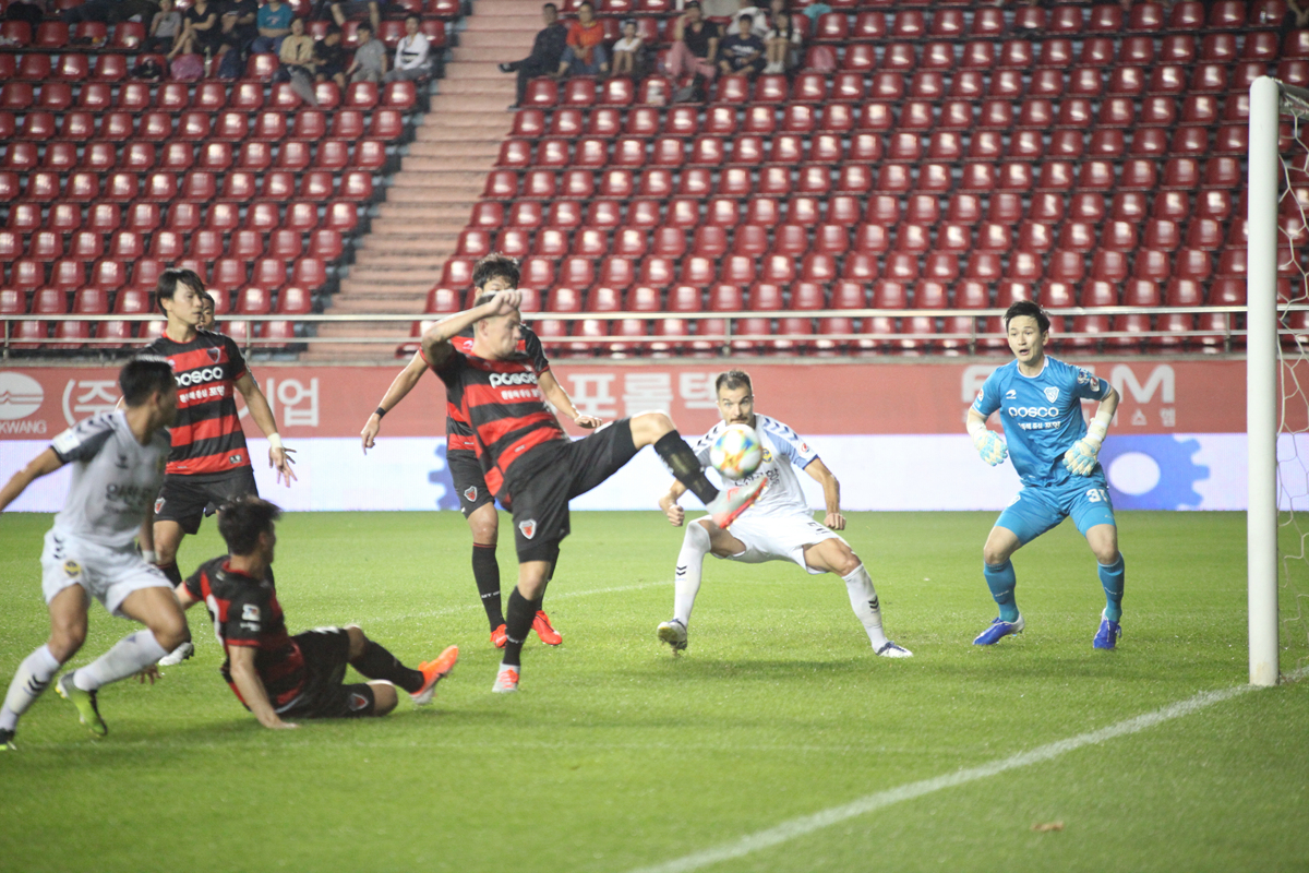 홈팀 포항도 4-2-3-1 포메이션을 들고 나왔다. 일류첸코가 최전방 공격수로 출격했고, 허용준, 하승운, 완델손이 2선에 배치되었다. 중원에는 이수빈, 정재용이 나섰고, 심상민, 김광석, 배슬기, 김용환이 포백을 이루었다. 골문에는 강현무가 선발로 나왔다.