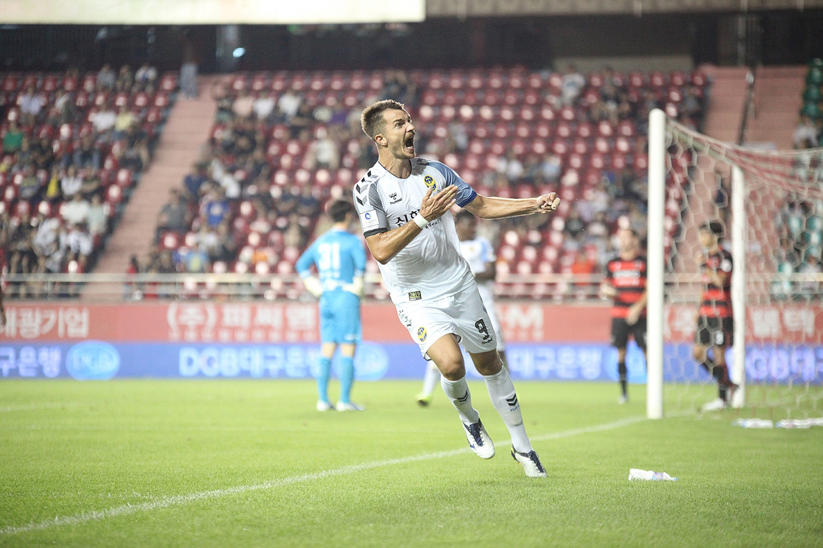 송민규의 발리슛을 막아낸 정산의 선방을 끝으로 전반전은 1-2로 마무리됐다. 포항의 선축으로 시작된 후반전에는 5분 만에 완델손이 1대 1 찬스를 잡았다. 하지만 정산이 몸을 날려 막았다. 후반 8분엔 완델손의 코너킥을 하창래가 헤딩으로 마무리 하는 등 파상공세를 펼쳤다. 패색이 짙어진 순간 무고사가 상황을 바꿨다. 후반 15분 정훈성의 크로스를 발 끝으로 살짝 건드려 만회골을 기록한 것이다. 이어 3분 뒤 18분에는 감각적인 중거리 슛으로 동점을 만들었다.