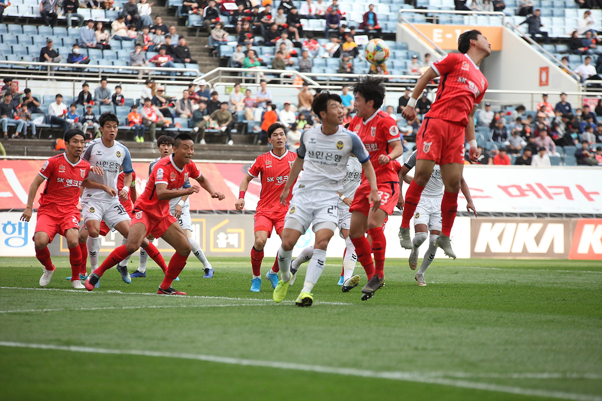 원정팀 인천은 좀처럼 결정적인 기회를 만들지 못하며 제주에게 끌려 다녔다. 전반전에 제주는 11개의 슈팅을 쏟아냈다. 반면 인천은 단 2개의 슈팅만을 기록했다. 전반전은 0-0으로 끝났다.