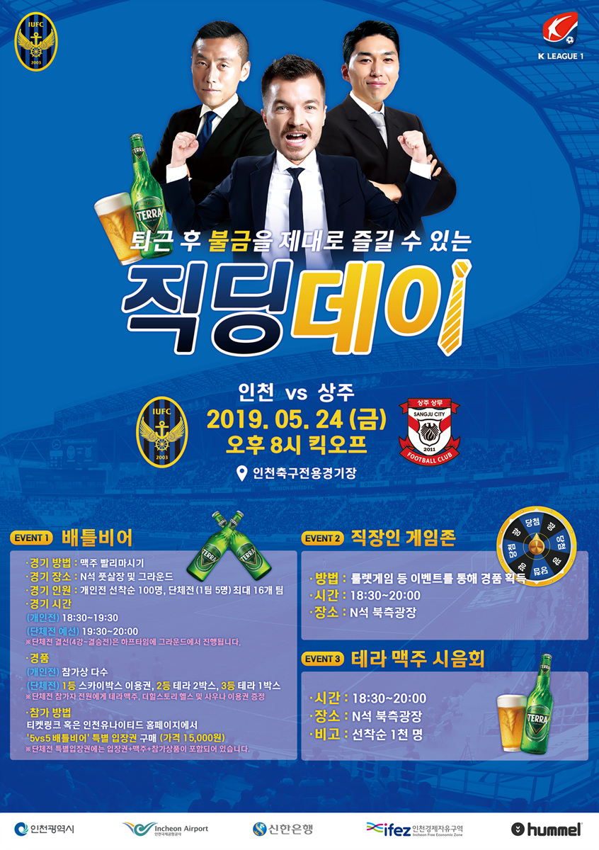 인천유나이티드가 하이트맥주와 함께 5월 24일 홈경기에서 직장인들을 위한 ‘직딩데이’ 이벤트를 개최한다.