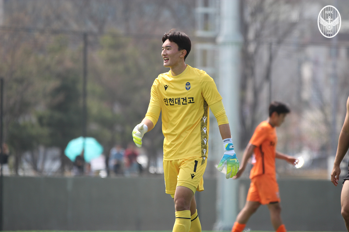 인천유나이티드 U-18 대건고가 1일 인천유나이티드 축구센터에서 펼쳐진 ‘2023 K리그 주니어 U18’ A조 5라운드 제주유나이티드 U-18과 홈 경기에서 2-1로 이겼다. 선발 출전한 골키퍼 김민준은 상대의 파상공세를 견디며 단 1골만을 내줬고, 팀 승리를 이끌었다.