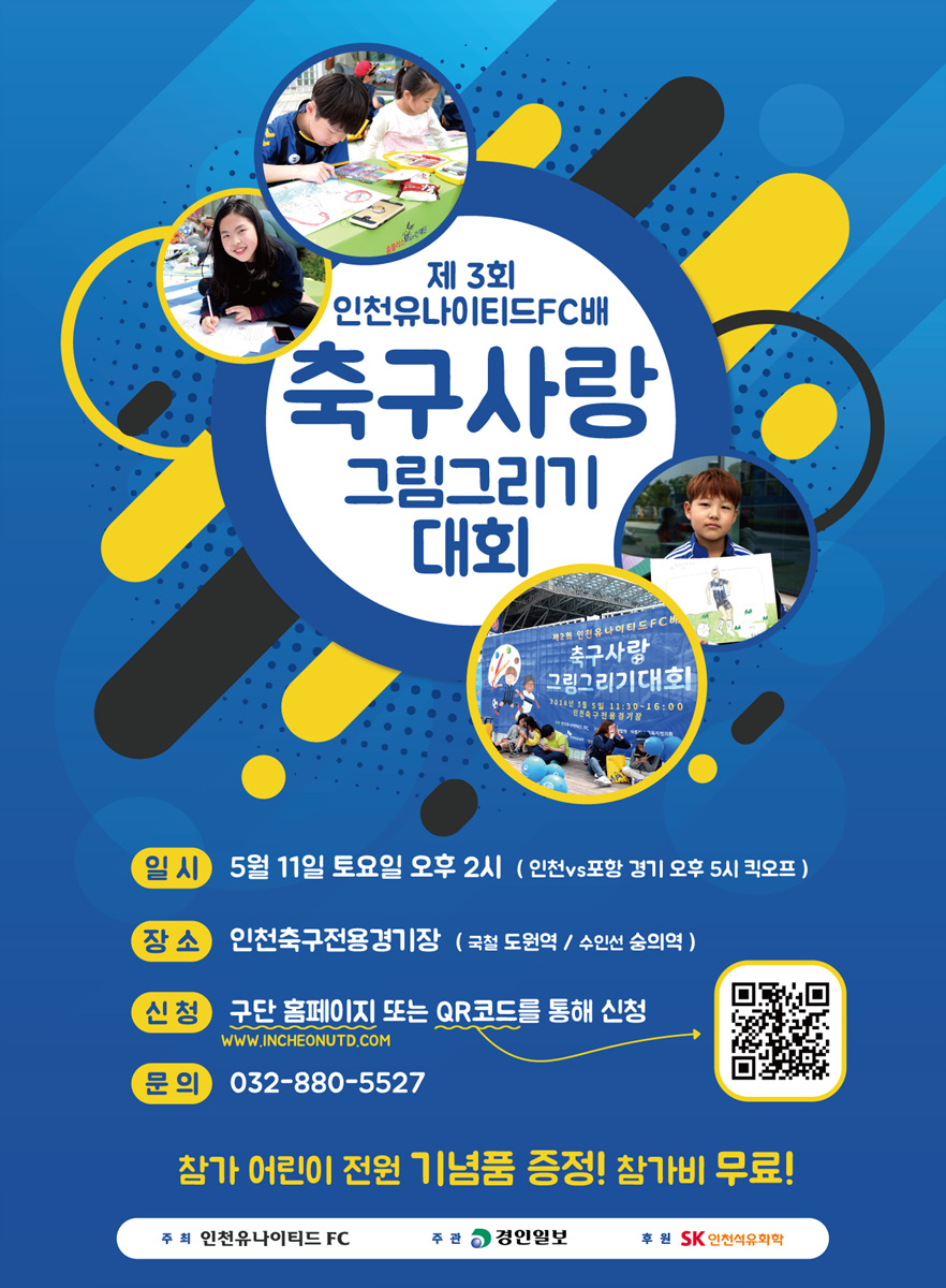 안녕하세요, 인천유나이티드입니다. ‘제 3회 인천유나이티드FC배 축구사랑 그림그리기 대회’ 개최와 관련하여 안내 말씀을 드립니다.