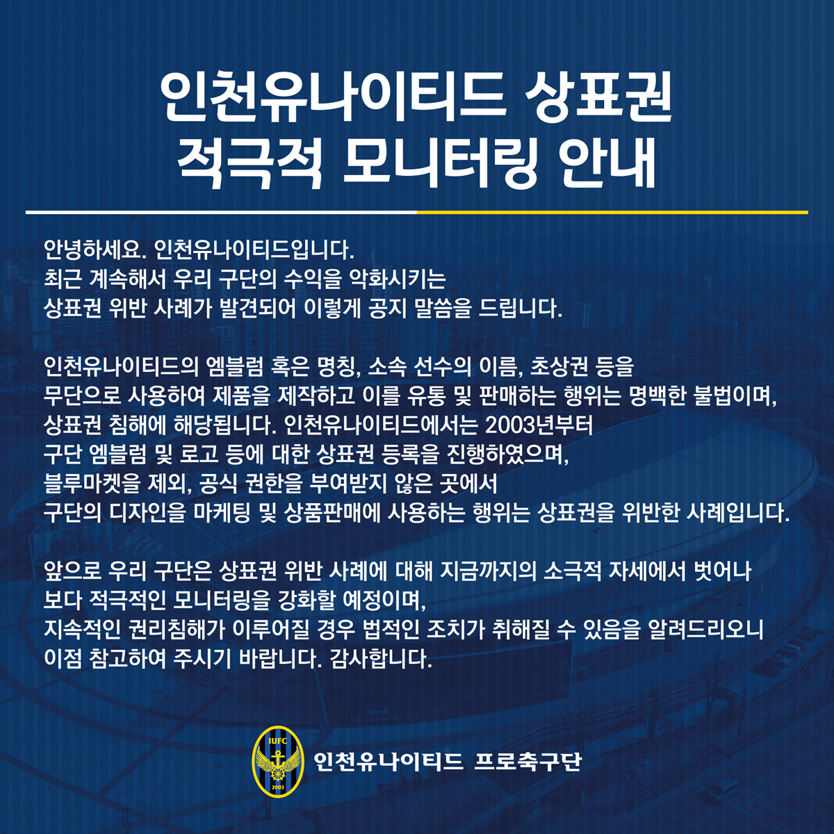 구단 상표권 위반 사례에 대한 안내의 말씀