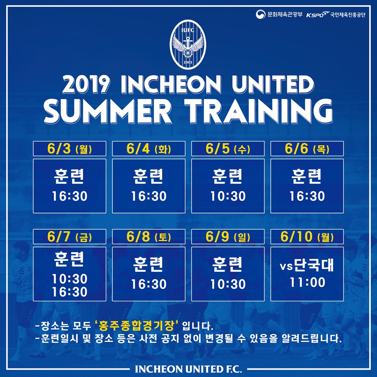 인천 팬 여러분께서는 참고 부탁드리며 사전 공지 없이 훈련 시간 및 장소 등이 변경될 수 있음을 꼭 확인해주시기 바랍니다. 감사합니다.INCHEON UNITEDMEDIA FEEDS