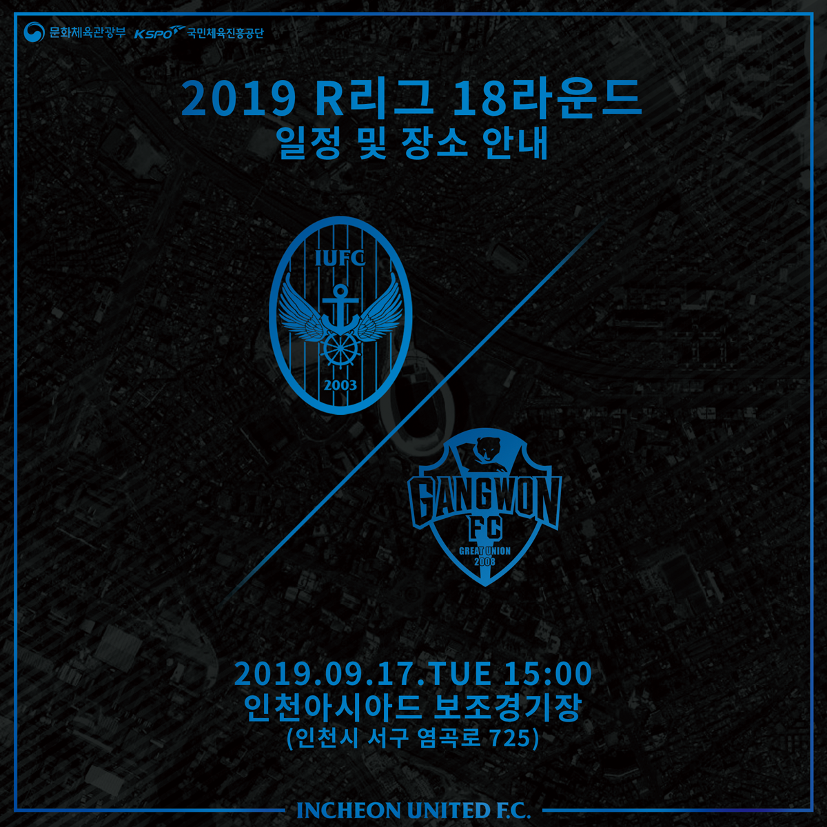 안녕하세요, 인천유나이티드입니다. 9월 17일 화요일 오후 3시 인천아시아드 보조경기장에서 강원FC와의 R리그 18라운드 홈경기가 진행됩니다.