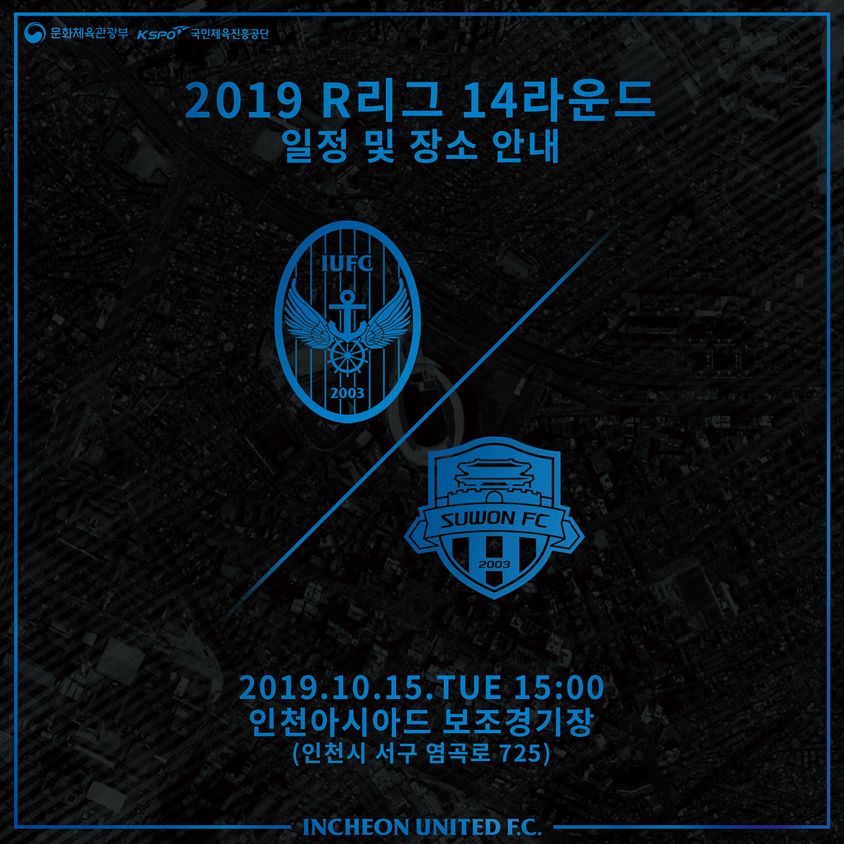 안녕하세요, 인천유나이티드입니다. 10월 15일 화요일 오후 3시 인천아시아드 보조경기장에서 수원FC와의 R리그 14라운드 홈경기가 진행됩니다.