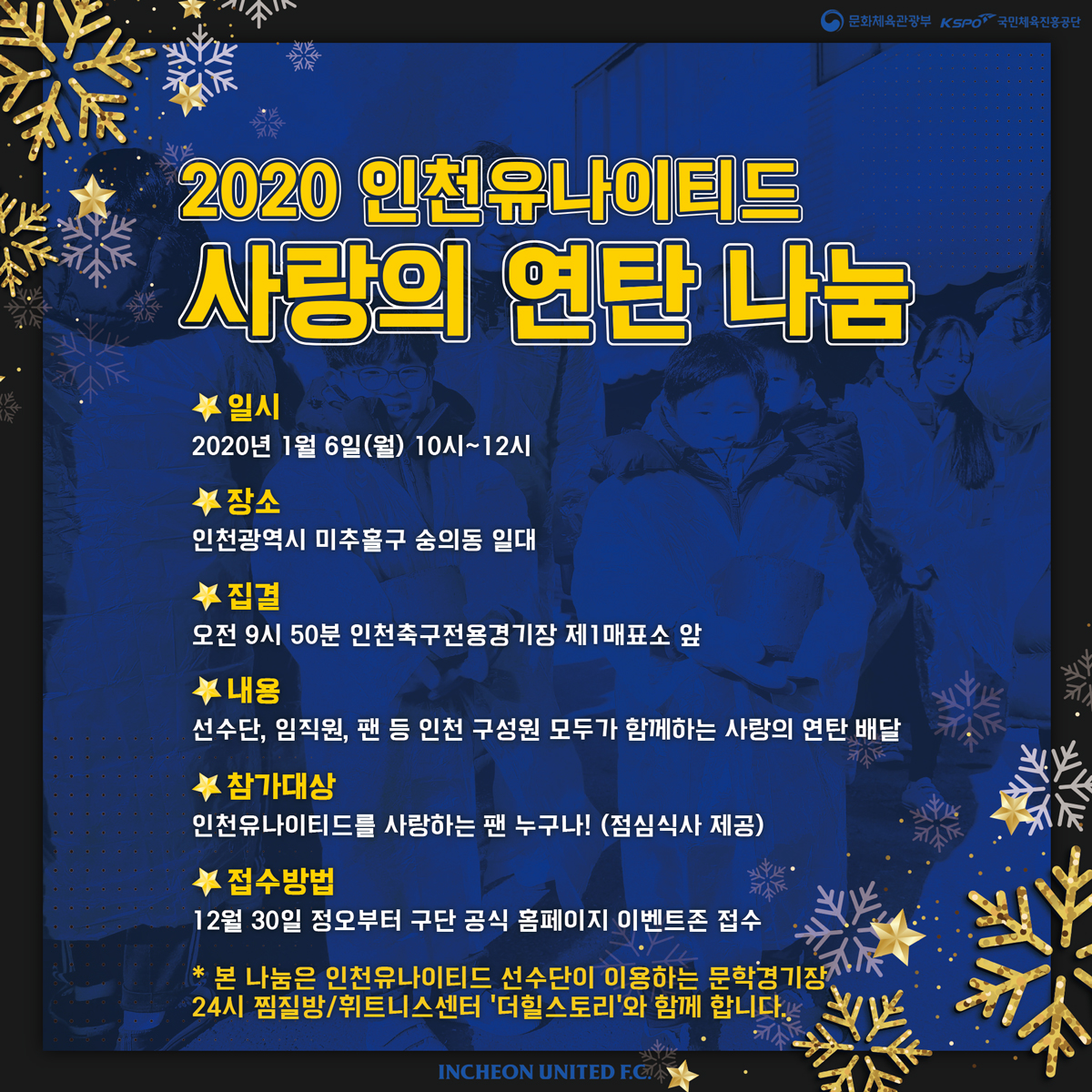 다가오는 새해, 인천 구성원이 되어 함께 2020 사랑의 연탄 나눔을 실천할 인천 팬 여러분을 모집합니다.