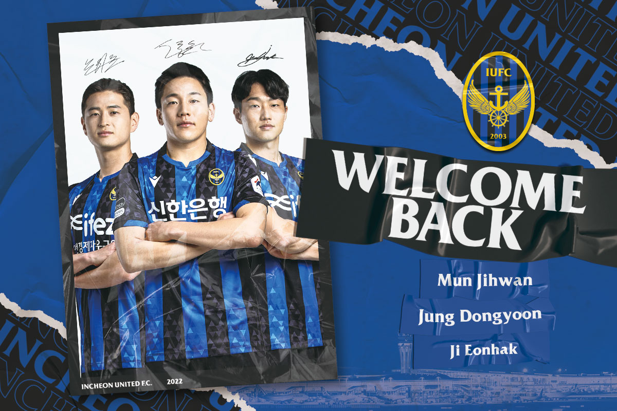 인천 구단은 군 복무를 위해 지난 2021년 5월 김천상무로 옮겼던 문지환, 정동윤, 지언학이 국방의 의무를 다하고 팀에 합류한다고 20일 밝혔다.