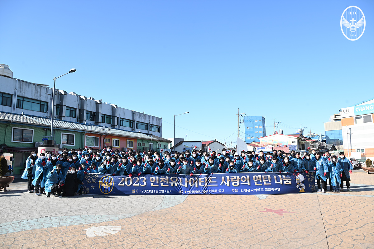 이번 사랑의 연탄 나눔 행사는 코로나19로 3년 만에 진행한 행사다. 인천유나이티드는 매년 초 인천광역시를 대표하는 시민구단으로서 소외계층을 위한 사회공헌 실천을 통해 지역 주민과 함께 호흡하기 위해 연탄 나눔 행사를 진행하고 있다. 이날 행사에는 코칭 및 지원스태프와 프로선수단, 사무국 임직원, 그리고 사전에 선착순 모집된 인천 팬 40명 등 약 120여 명이 참여해 자리를 빛냈다. 연탄 배달에 앞서 프로선수단과 사무국 임직원 등은 시무식을 진행하기도 했다.
