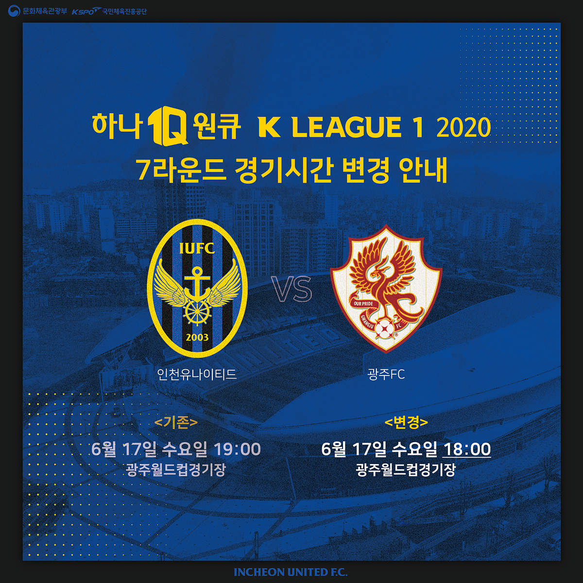 팬 여러분께서는 변경된 시간을 확인해주시기 바랍니다. 감사합니다.INCHEON UNITEDMEDIA FEEDS