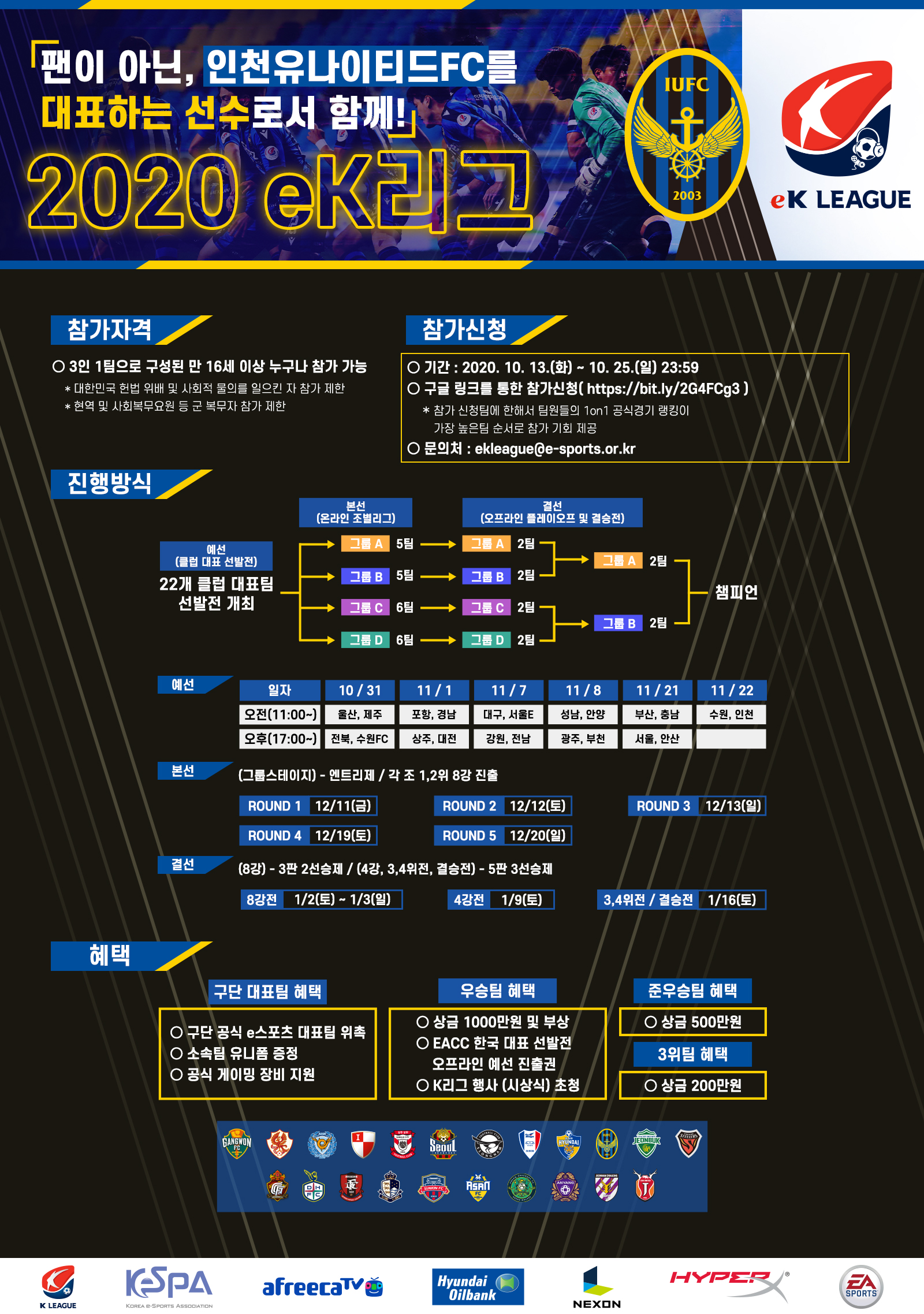 구단을 대표하는 E스포츠 선수가 될 수 있는 2020 eK리그 대회 관련 안내드립니다.