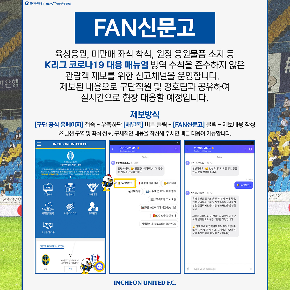 제보된 내용은 구단 직원 및 경호팀과 공유되며 실시간으로 현장대응할 예정입니다.