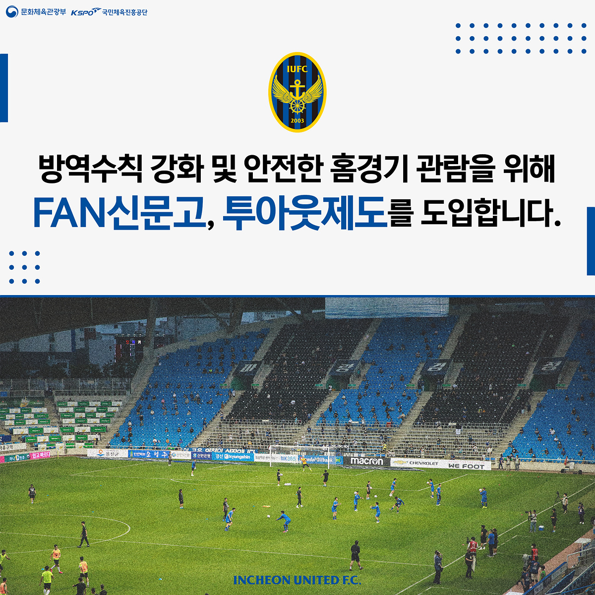 다가오는 10월 24일 부산전 26R 홈경기에는 유관중 홈경기 방역수칙 강화 및 안전한 홈경기 관람을 위해 를 도입합니다.