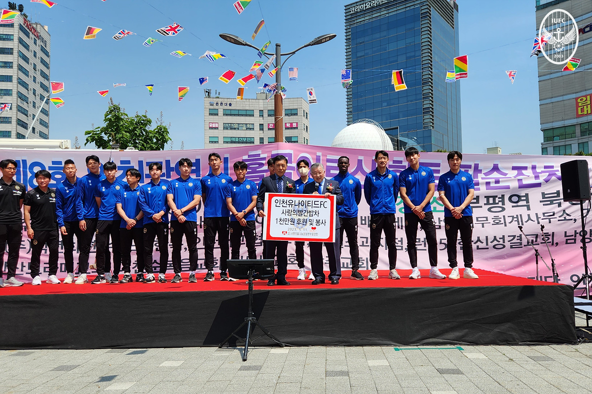 한편, 인천유나이티드 프로축구단은 2023년 들어 현대시장 화재 피해자를 위해 기부했고 인천 지역 시각장애인을 돕는 등 여러 사회공헌 활동을 펼친 바 있다.INCHEON UNITEDMEDIA FEEDS