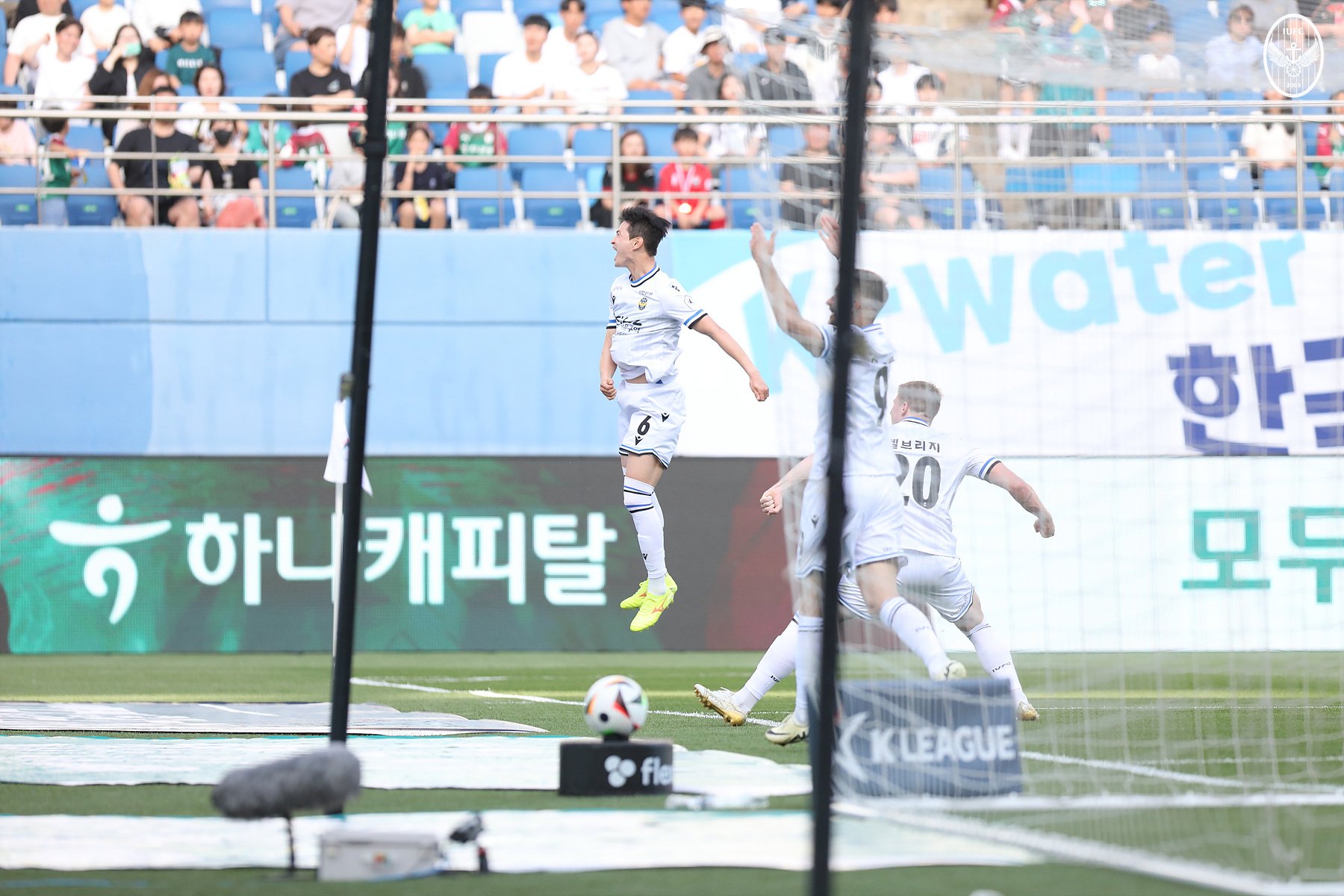 조성환 감독이 이끄는 인천유나이티드는 지난 18일 대전월드컵경기장에서 펼쳐진 ‘하나은행 K리그 1 2024’ 13라운드 대전하나시티즌과의 원정 경기에서 1-0 승리를 거두었다.원정팀 인천은 3-4-3 포메이션으로 선발 라인업을 꾸렸다. 민성준 골키퍼가 골문을 지켰고, 델브리지-요니치-김연수가 수비진을 구축했다. 중원에서는 최우진-김도혁-음포쿠-정동윤이 호흡을 맞췄고, 공격에 박승호-무고사-김성민이 나섰다.