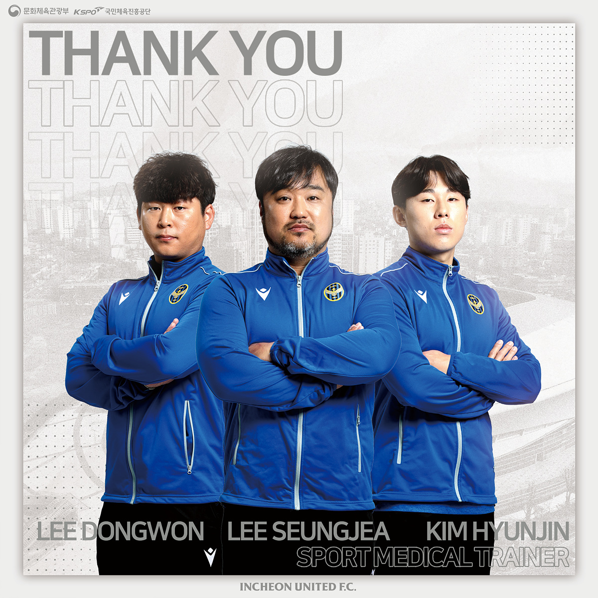 안녕하세요, 인천유나이티드입니다. 구단의 스포츠메디컬 트레이너 3명의 계약이 만료되어 팬 여러분들께 안내 말씀을 전해드립니다.