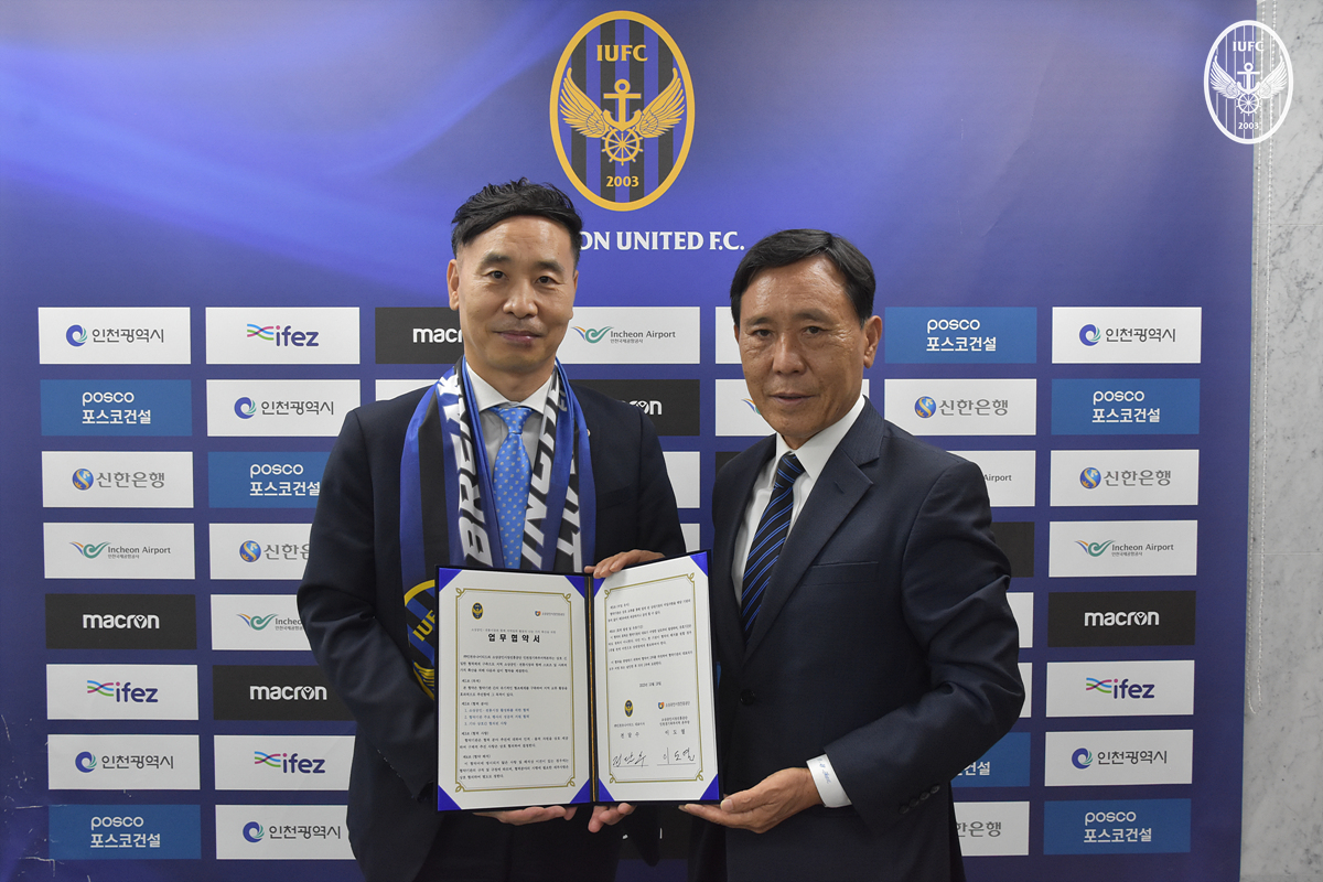 전달수 인천 구단 대표이사는 "시민구단으로서 앞으로 축구를 통해 소상공인과 협력하고 상생하도록 노력하겠다“고 말했다. 이도열 본부장은 “35만 인천지역 소상공인 발전을 위해 애써주신 인천구단 관계자 여러분께 감사드린다"고 화답했다.INCHEON UNITEDMEDIA FEEDS