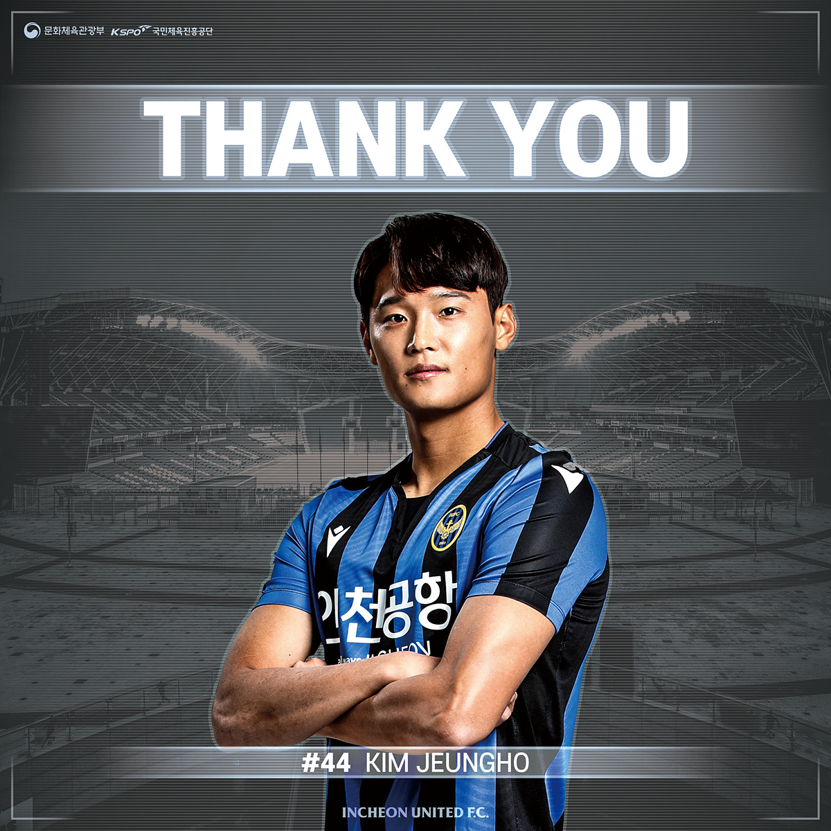 우리 구단은 그동안 웃는 모습과 든든한 수비력을 보여준 김정호 선수에게 깊은 감사를 드리며, 앞으로 새 팀에서 날개를 펼칠 수 있길 응원하겠습니다.INCHEON UNITEDMEDIA FEEDS