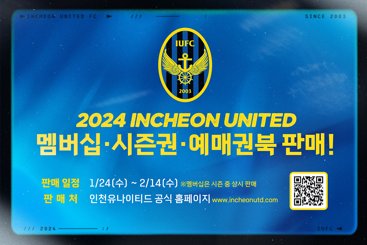 인천 구단은 오는 24일 수요일 오후 2시부터 구단 공식 홈페이지를 통해 2024시즌 시즌권, 멤버십, 예매권북을 판매한다고 23일 밝혔다.