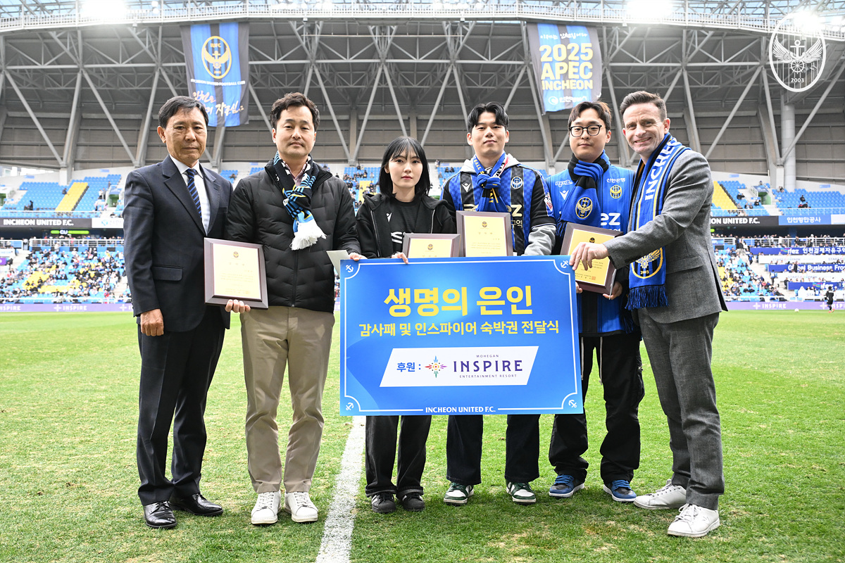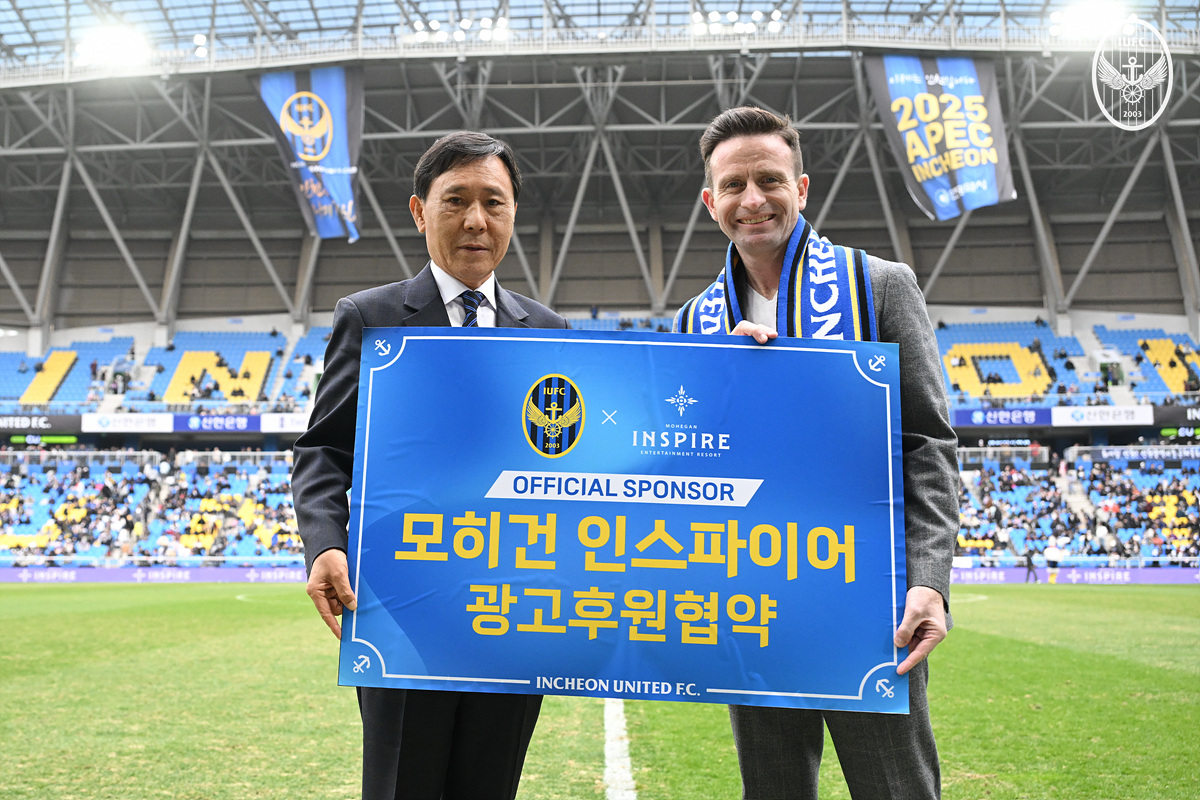 홈경기 당일 피치 위에서 열린 협약식에는 전달수 인천 구단 대표이사와 마이클 젠슨(Michael Jensen) 모히건 인스파이어 엔터테인먼트 리조트 최고마케팅책임자(CMO)가 참석했다. 이번 협약을 통해 인천 구단은 2024시즌 현금 후원과 인스파이어 엔터테인먼트 리조트 숙박시설 및 식음료(F&B) 바우처 등의 현물 후원을 받고 이를 매 홈경기 인천 시민과 팬들에게 제공할 수 있게 됐다.