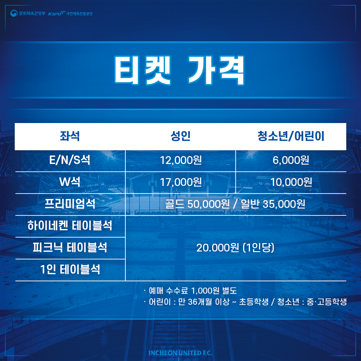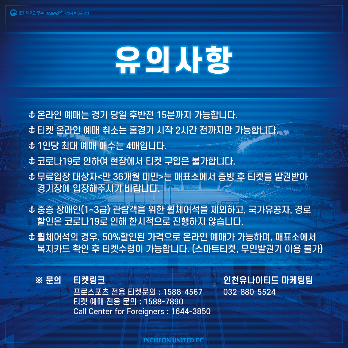 *축덕카드 및 휠체어석을 제외한 할인정책은 한시적으로 미운영합니다. 팬 여러분의 양해 부탁드립니다.인천유나이티드 2021 홈 개막전 예매 안내