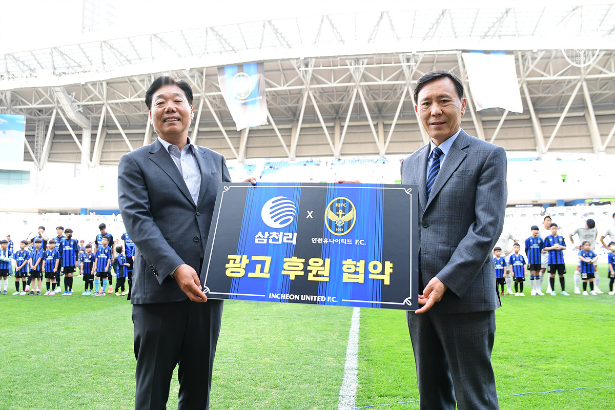 홈경기 당일 식전행사로 열린 협약식에는 전달수 인천 구단 대표이사와 삼천리 인천지역담당 김진묵 이사가 참석했다. 이번 후원 협약으로 삼천리는 2004년 인천 구단 창단 이후 21년 연속 스폰서십을 체결하는 금자탑을 세웠으며, 구단은 이에 특별히 감사패를 준비하여 그 의미를 더했다.