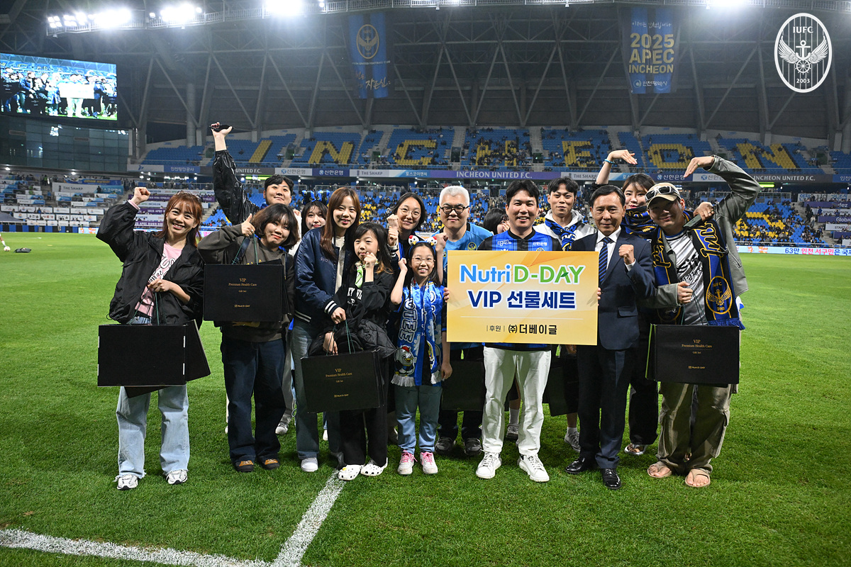 (사진 - 1일 열린 협약식 당일 5월 가정의 달을 기념하여 경기장을 찾아온 팬들 대상으로 추첨을 통해 ‘뉴트리디데이 VIP 선물세트’를 이벤트 경품으로 제공했다)㈜더베이글 김형대 대표이사는 “인천유나이티드 팬들과 뉴트리디데이가 소중한 추억을 쌓고 만들 수 있어 영광스럽게 생각하며 가정의 달을 맞아, 온 가족이 축구 경기와 더불어 뉴트리디데이와 함께 항상 건강하시길 바란다”라고 밝혔다. 이에 전달수 구단 대표이사는 “뉴트리디데이와 4년 연속 함께하며 구단이 많은 성장을 이뤄냈다”며 “앞으로도 좋은 관계를 발전시켜 시민구단의 모범이 될 수 있도록 노력할 것”이라고 화답했다.