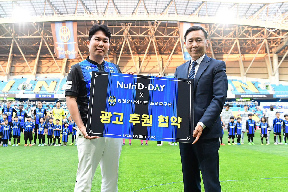 홈경기 당일 식전행사로 열린 협약식에는 전달수 인천 구단 대표이사와 ㈜더베이글 김형대 대표이사가 참석했다. 이번 후원 협약으로 인천 구단은 뉴트리디데이와 2021년부터 4년 연속 스폰서십을 유지하게 됐다.