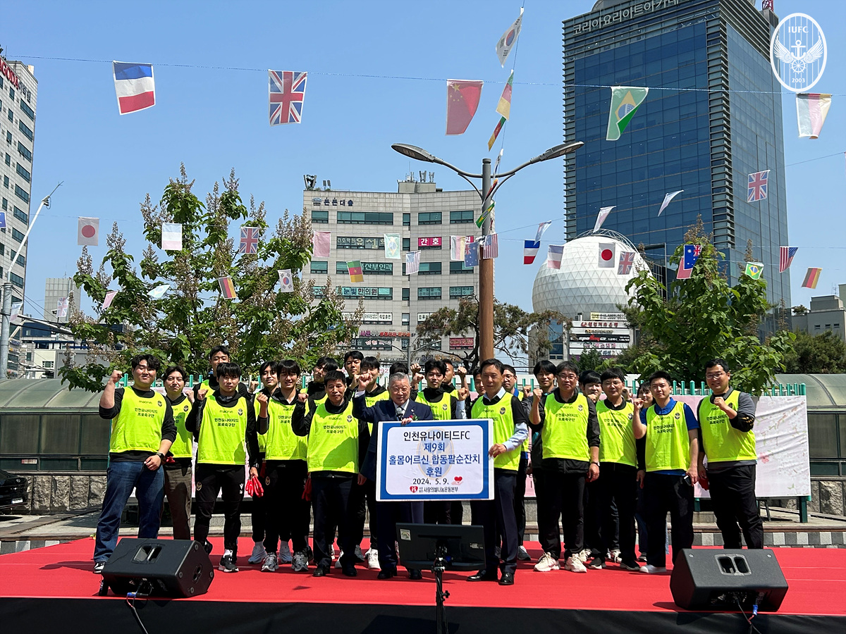 인천 구단은 이날 구슬땀을 흘려가며 행사 부스를 설치했고, 선물 증정, 무료급식 공간에서의 배식 등을 도왔다. 또한, 전달수 대표이사를 비롯해 임직원과 선수단이 십시일반 하여 1천만 원을 팔순 잔치 주최단체인 사랑의쌀나눔운동본부 측에 기부했다. 2023년에 이어 2년 연속 기부다.