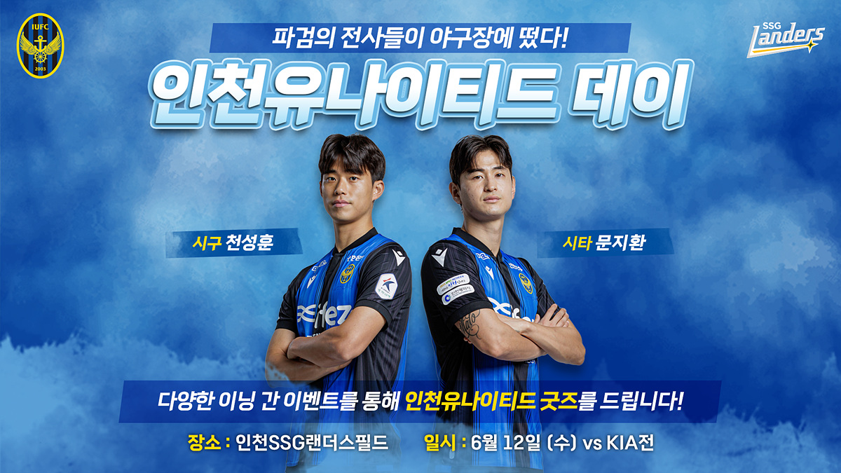 인천 구단은 인천 연고 프로야구단인 SSG랜더스와 함께 2년 연속 ‘인천유나이티드 데이’를 진행하기로 했다. 오는 6월 12일 SSG랜더스의 홈 경기에서 천성훈 선수가 시구를, 문지환 선수가 시타를 진행한다. 또한, 당일 이닝 간 이벤트로 두 선수가 참여하는 대결 행사 및 인천유나이티드 퀴즈 행사가 진행될 예정이며 행사 참여자에 한해 인천 구단 스페셜 굿즈가 증정된다.