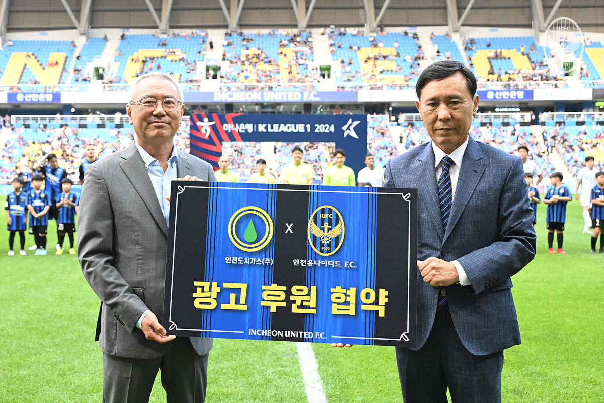 인천 구단은 지난 6월 23일 인천축구전용경기장에서 열린 하나은행 K리그 1 2024 18라운드 포항스틸러스와의 홈 경기에서 인천도시가스와 공식 후원사 협약식을 체결했다고 25일 밝혔다.