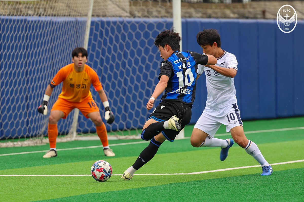 [UTD기자단] 창단한 지 어느새 20년을 넘긴 인천유나이티드는 K리그를 대표하는 구단으로 성장하고 있다. 오랜 역사 속에서 많은 선수들이 팀을 거쳐 갔고, 그 뿌리가 될 유소년 시스템도 훌륭하게 구축했다. 어느새 인천의 유소년 시스템은 또 하나의 자랑거리로 자리 잡았다.UTD기자단은 2024시즌을 맞이하여 인천의 미래를 책임질 유망주들을 한 명씩 소개하는 시간을 가져보고자 한다. 네 번째 주인공은 인천 대건고의 돌격대장, 성힘찬이다.[프로필]이름: 성힘찬생년월일: 2006년 9월 9일신체조건: 178cm, 70kg포지션: FW등번호: 10출신교: 경기 보물섬남해U12 – 경남 보물섬남해U15 – 인천 대건고남해에서 시작된 축구 경력, 어느 날 찾아온 인천의 제안