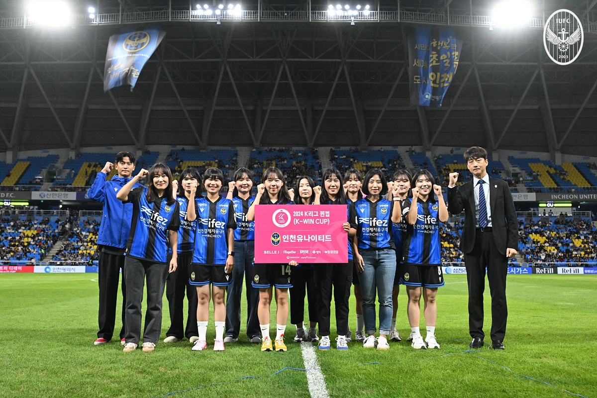 지난 9월 22일 인천축구전용경기장에서 열린 ‘하나은행 K리그 1 2024’ 31라운드 울산 HD와의 홈 경기에서 ‘2024 K리그 여자 축구대회 퀸컵(K-WIN CUP)’에 출전하는 선수들을 위한 출정식이 열렸다.