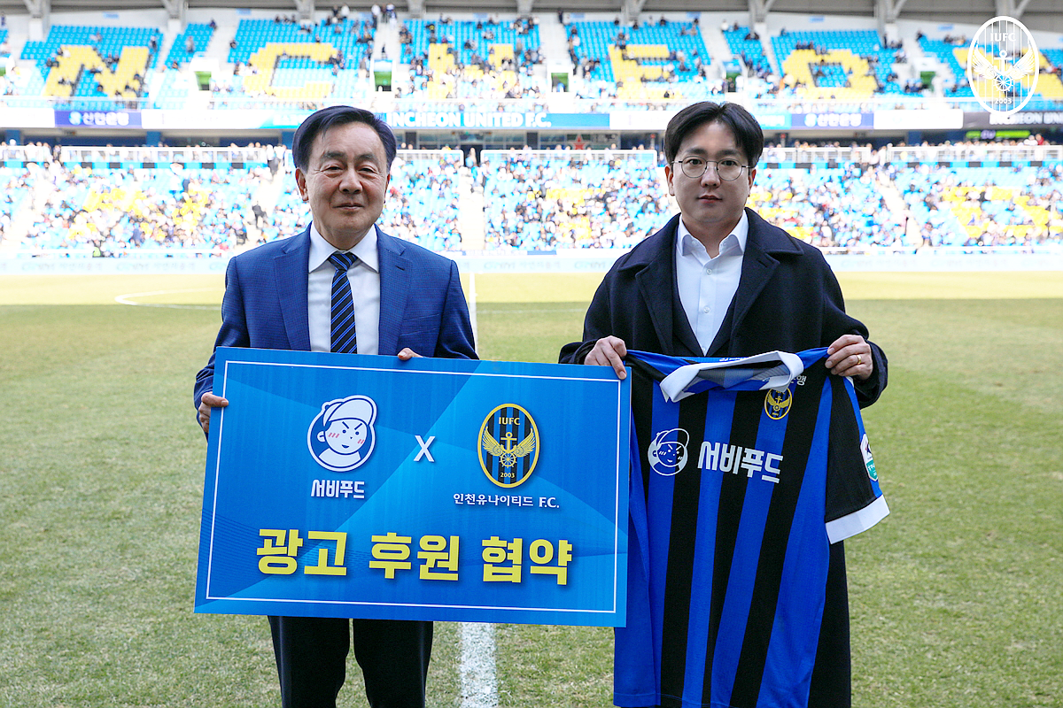 이로써 서비푸드는 2021년부터 4년 연속으로 K리그를 대표하는 인천유나이티드 프로축구단의 공식 후원사로 나서게 됐다.