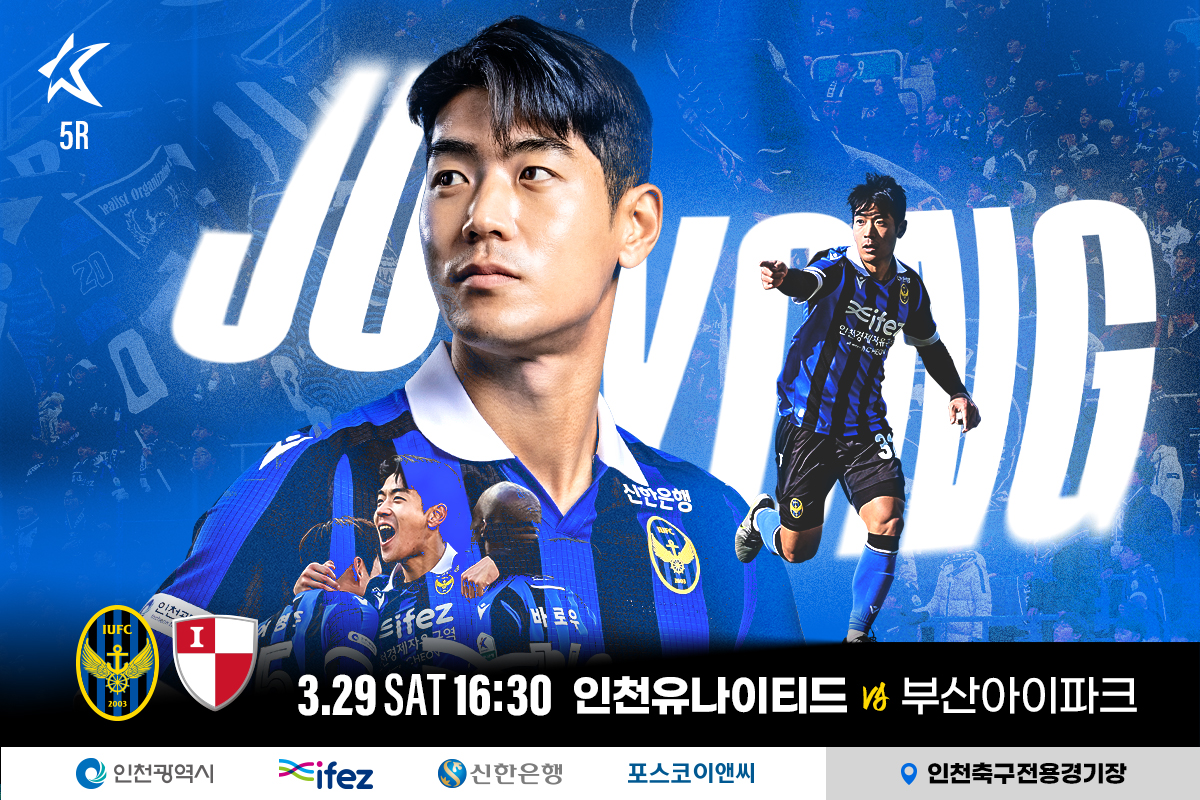 이번 시즌 홈 경기에서 무패 행진을 이어가고 있는 인천유나이티드가 오는 3월 29일(토) 오후 4시 30분, 인천축구전용경기장에서 부산아이파크와 격돌한다.