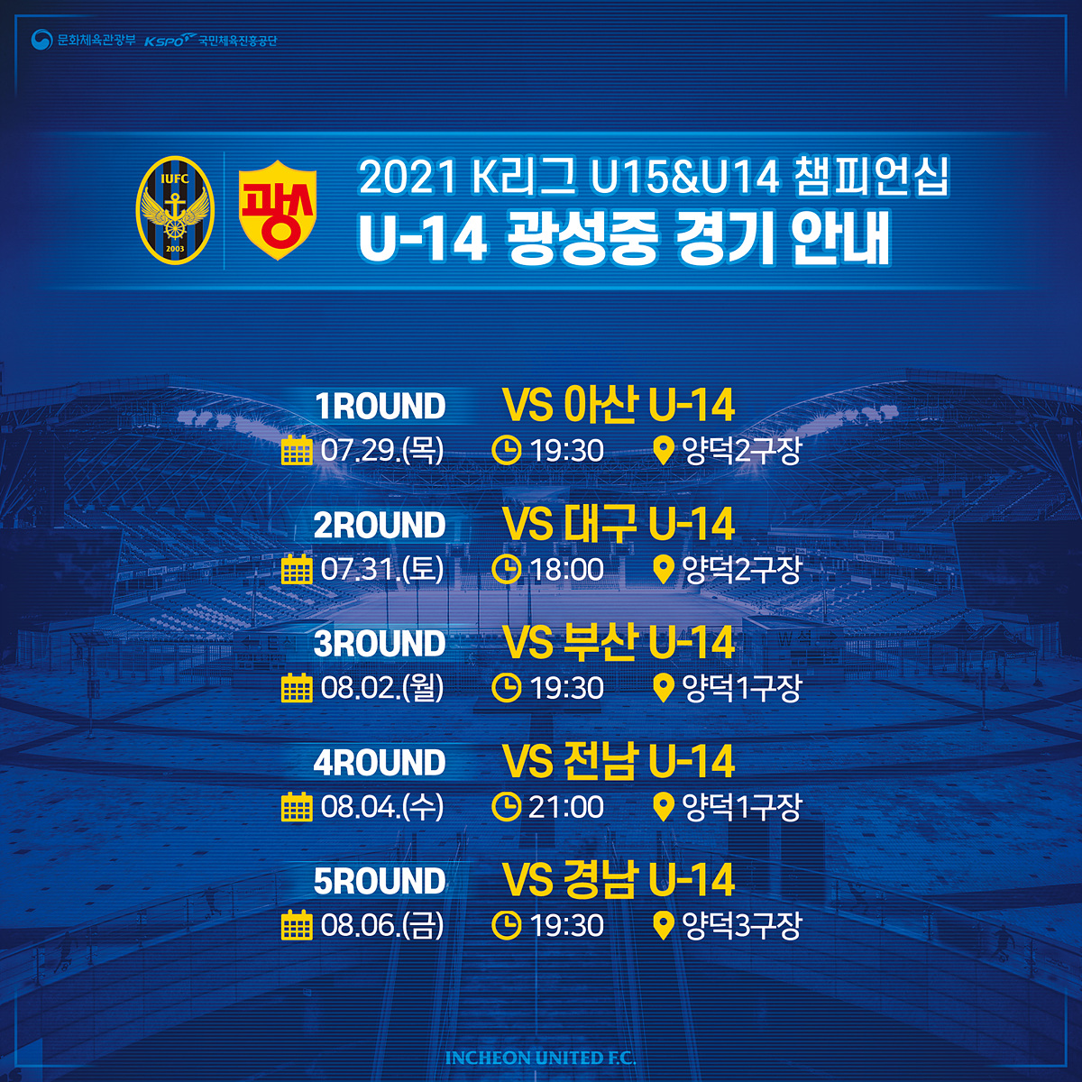 구단 U-15/14 광성중이 2021 K리그 챔피언십 대회에 참가하여 안내 드립니다.
