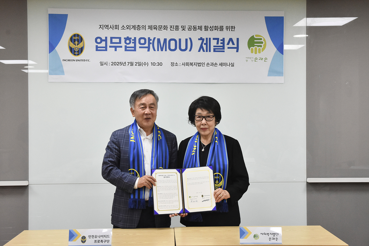 장영순 손과손 대표이사는 “인천을 대표하는 프로스포츠구단인 인천유나이티드와 동행하게 되어 매우 기쁘다”며, “이번 협약이 우리 발달장애인 축구단 아이들에게 단순한 체육활동을 넘어, 자신감을 갖고 사회와 연결될 수 있는 소중한 계기가 되길 바란다”고 전했다.