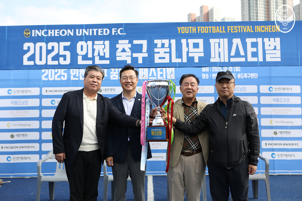 10/19 인천유나이티드 송도축구센터에서 진행...“인천 꿈나무 축제의 장”‘2025 인천축구 꿈나무 페스티벌’이 10월 19일 인천유나이티드 송도축구센터에서 열렸다.대한민국 축구발상지 인천광역시를 알리고 인천의 축구 꿈나무를 발굴하기 위한 대회로 인천유나이티드가 주최하고 인천광역시가 후원했다.개회식에는 하병필 인천광역시 행정부시장과 인천유나이티드 조건도 대표이사, 강원구 사내이사, 최성욱 사외이사가 내빈으로 참석했다.‘인천축구 꿈나무 페스티벌’은 2009년부터 인천유나이티드 아카데미 회원을 대상으로 진행된 ‘사커 페스티벌’에서 시작되었다. 2017년부터는 인천에 거주하는 축구를 좋아하는 6~13세 어린이라면 누구나 참여할 수 있는 대회로 범위를 넓히며, 매년 10월 인천의 축구 유망주들이 기다리는 축제로 자리매김했다.이번 대회에는 인천 관내 150개 팀, 총 1,500명의 축구 꿈나무들이 참가해 마음껏 축구를 즐겼다. 경기 외에도 참가자 전원에게 미니 트로피를 증정했으며, 이벤트존에서는 캐논 슈팅, 순두부 트래핑 등 축구력 테스트와 그림 그리기 대회 등 다양한 즐길 거리가 함께 마련되었다.조건도 인천유나이티드 대표이사는 "인천의 아이들이 축구를 통해 꿈을 키우고, 지역사회와 함께 성장할 수 있는 의미 있는 자리를 만들게 되어 뜻깊다"며 "앞으로도 인천유나이티드는 지역과 함께 아이들의 성장을 응원하는 구단이 되겠다"고 말했다.
