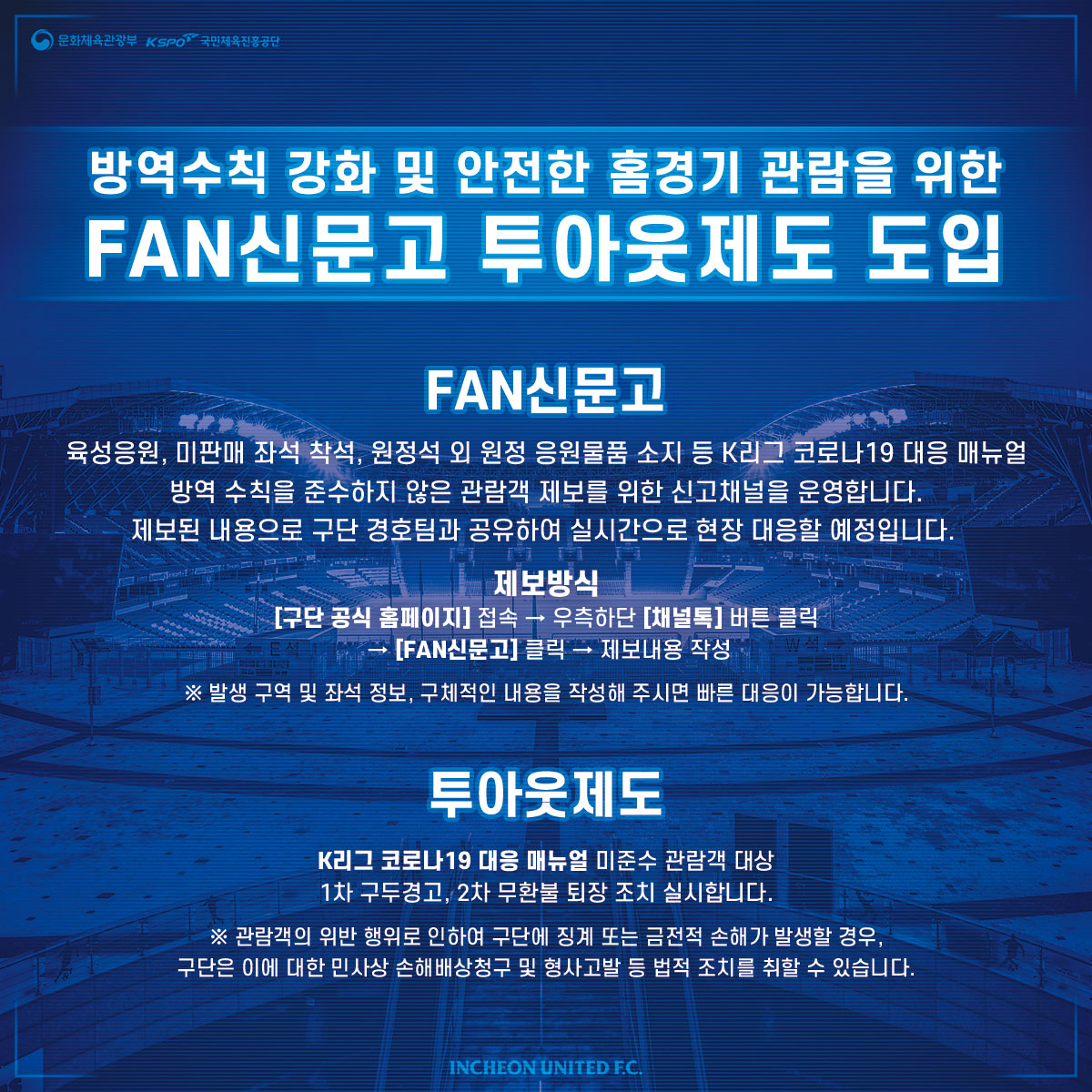 - 홈경기 방역수칙 강화 ‘FAN 신문고, 투아웃 제도’ 도입