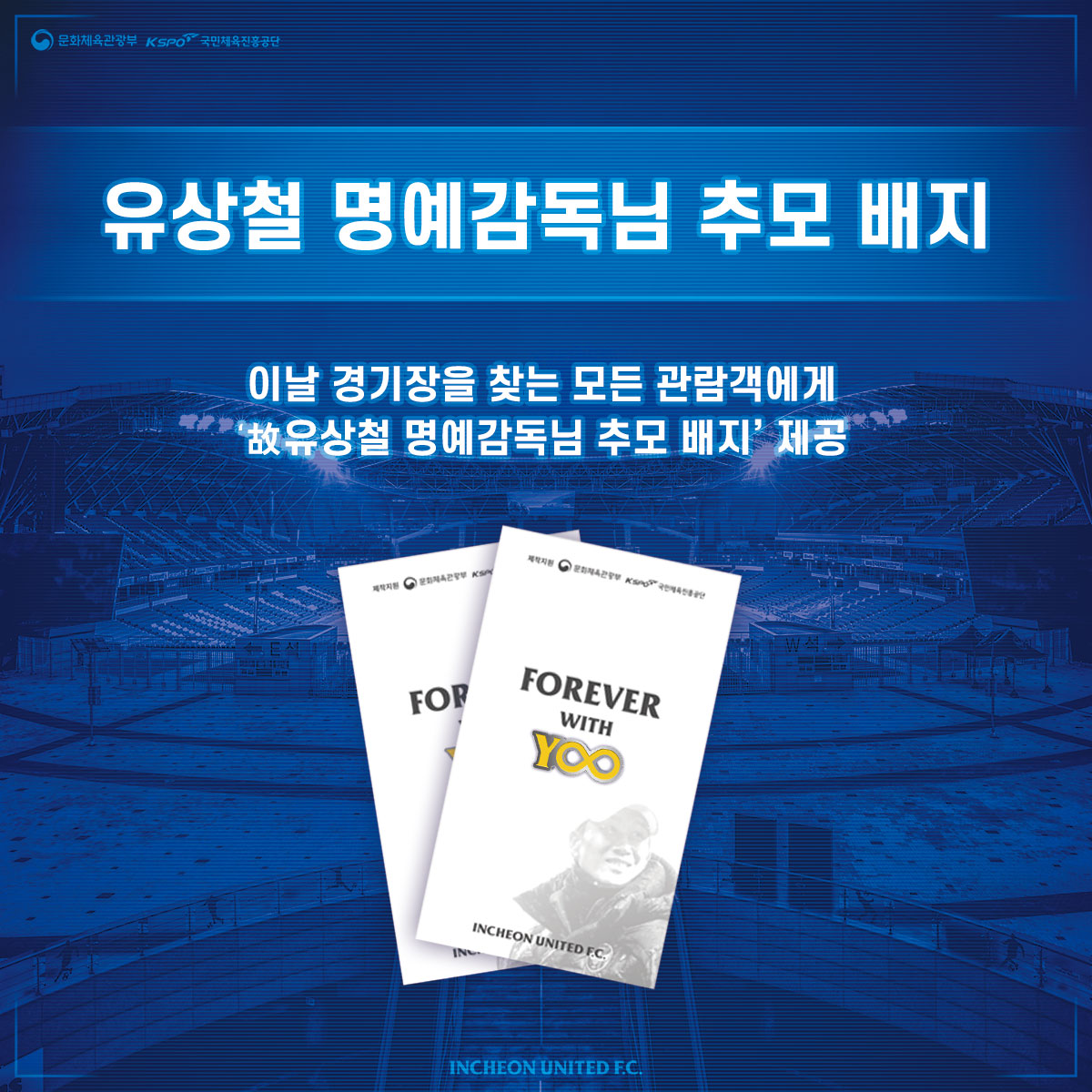 이날 경기장을 찾는 모든 관람객에게 故 유상철 명예감독님 추모 배지를 제공할 예정입니다. 이번 서울전 홈경기는 유상철 명예감독님이 유명을 달리한 이후 맞는 첫 유관중 홈경기입니다.