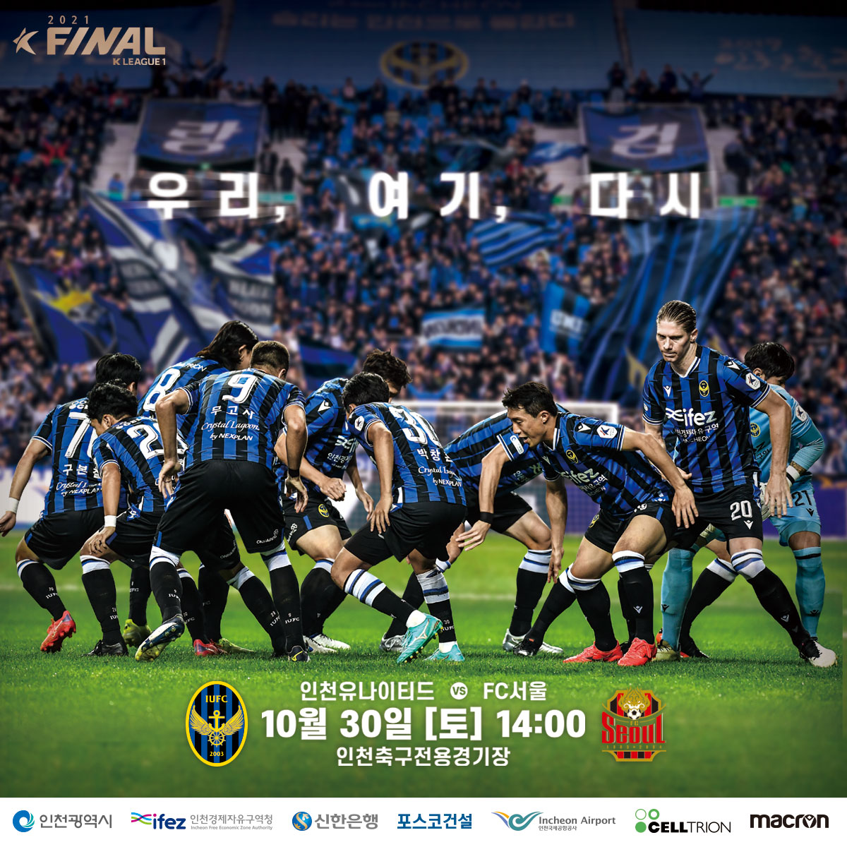 “파이널 라운드 첫 홈경기. 우리, 여기, 다시”10/30(토) 오후 2시. 인천유나이티드가 FC서울을 상대로 2021시즌 K리그 1 34라운드 파이널 라운드 첫 홈경기를 치릅니다.