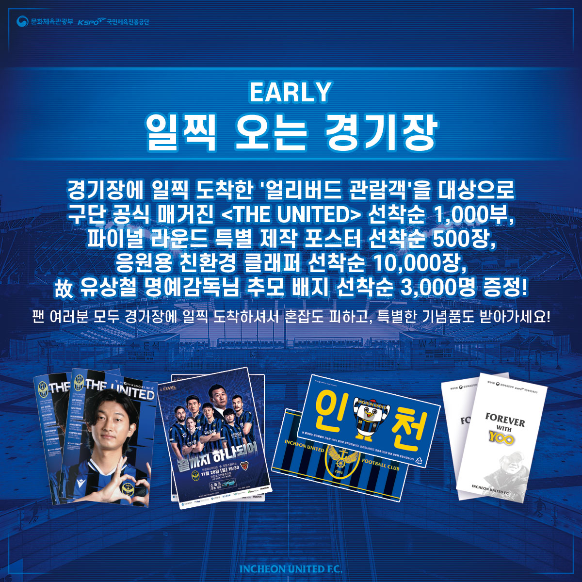 또한, 이번 포항전 홈경기에서는 ‘얼리버드 관람객’을 위해 각 게이트에서 구단 공식 매거진 THE UNITED Vol.9 1,000부,