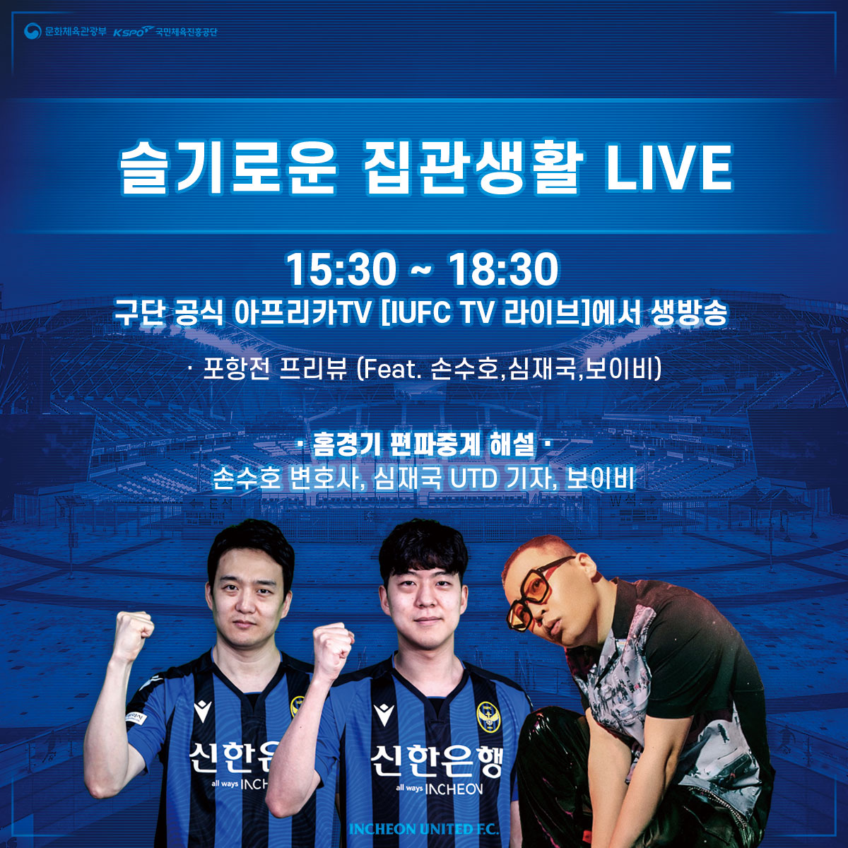 홈경기에 찾아온 팬이나 찾지 못한 팬 모두 참여할 수 있는 이벤트! 구단 아프리카TV 공식 계정 [IUFC TV 라이브]에서 경기 시작 1시간 전(15:30)부터 펼쳐지는 인천유나이티드 홈경기 편파중계를 '집관'하세요!