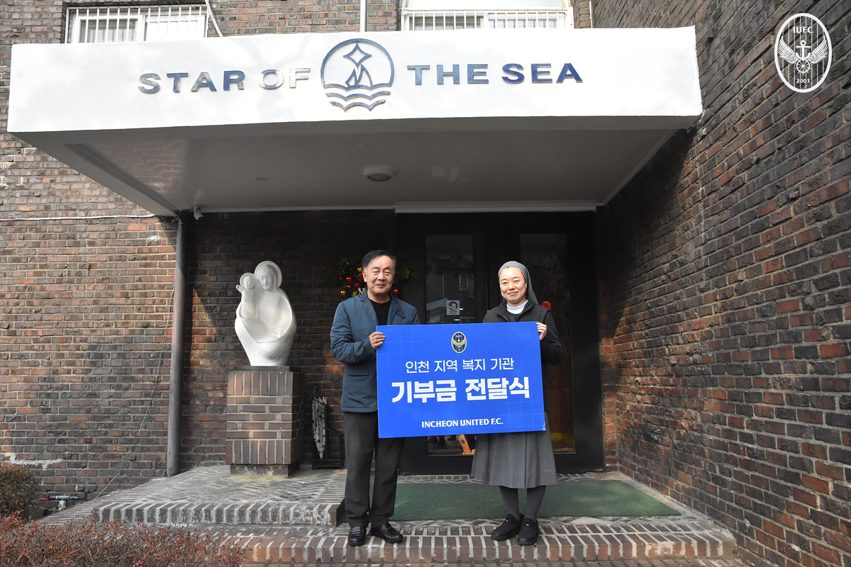 인천유나이티드(대표이사 조건도)가 연말을 맞아 인천 관내 복지시설에 기부금을 전달하였다.