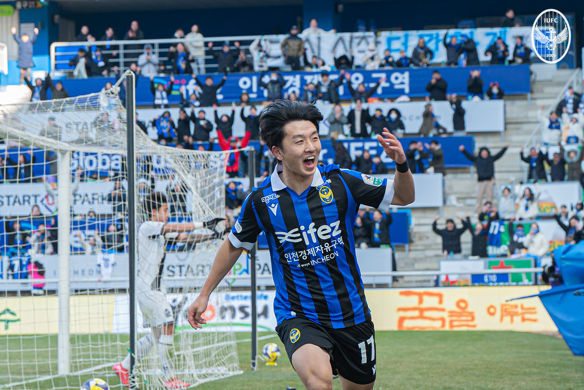 맹공에도 불구하고 득점이 나오지 않던 인천이었지만, 마침내 기회가 찾아왔다. 후반 36분 김건희가 후방에서 롱패스를 시도했고, 공간으로 침투한 무고사에게 연결됐다. 무고사는 류원우 골키퍼가 앞으로 나온 점을 포착하고 감각적인 로빙슛으로 선제 득점을 터뜨렸다. 찰나의 집중력과 천재성을 통해 만들어낸 득점이었다.