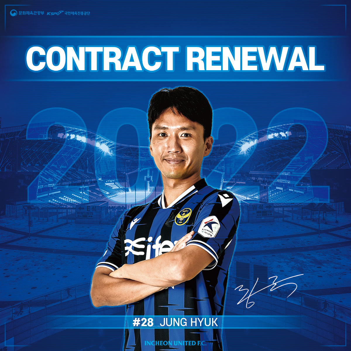 인천유나이티드 정혁이 구단과 1년 재계약에 합의했습니다. 오랜만에 친정 팀으로 돌아와 중원에 활력을 불어 넣어준 ‘돌아온 연어’ 정혁 선수와의 동행을 응원해주세요!