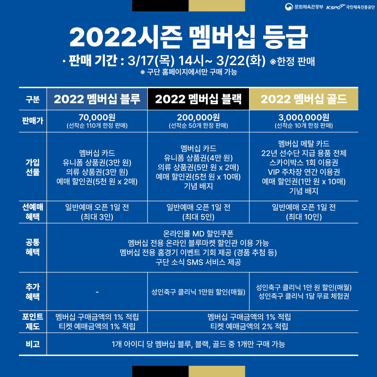 2022시즌 멤버십 2차 판매 안내