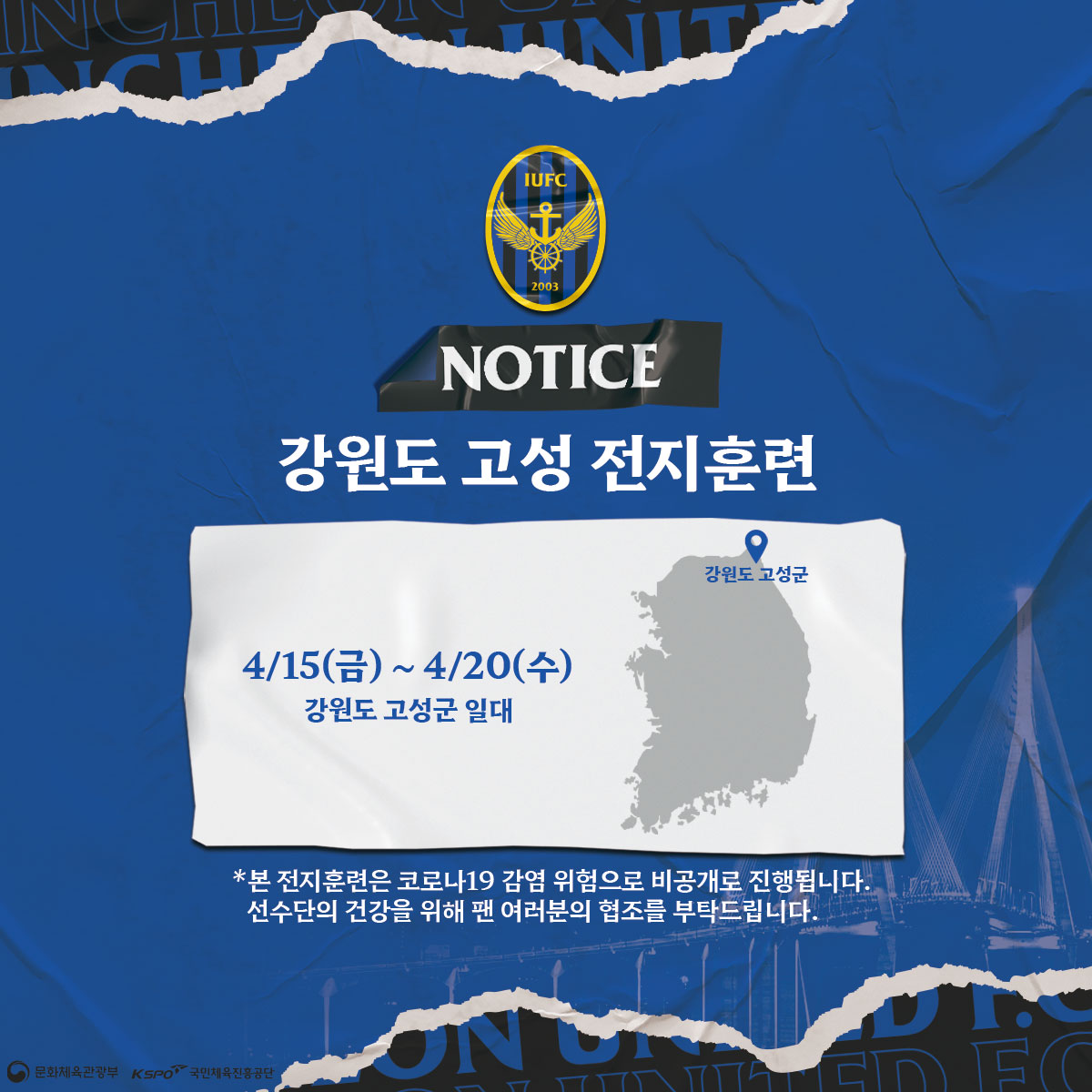 안녕하세요, 인천유나이티드입니다. 우리 구단 프로선수단은 휴식기를 맞아 내일(금)부터 고성 전지훈련을 진행할 예정입니다.
